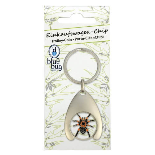 Dekorativní přívěšek na klíče s kompatibilním žetonem do všech nákupních košíků s motivem sklípkana.