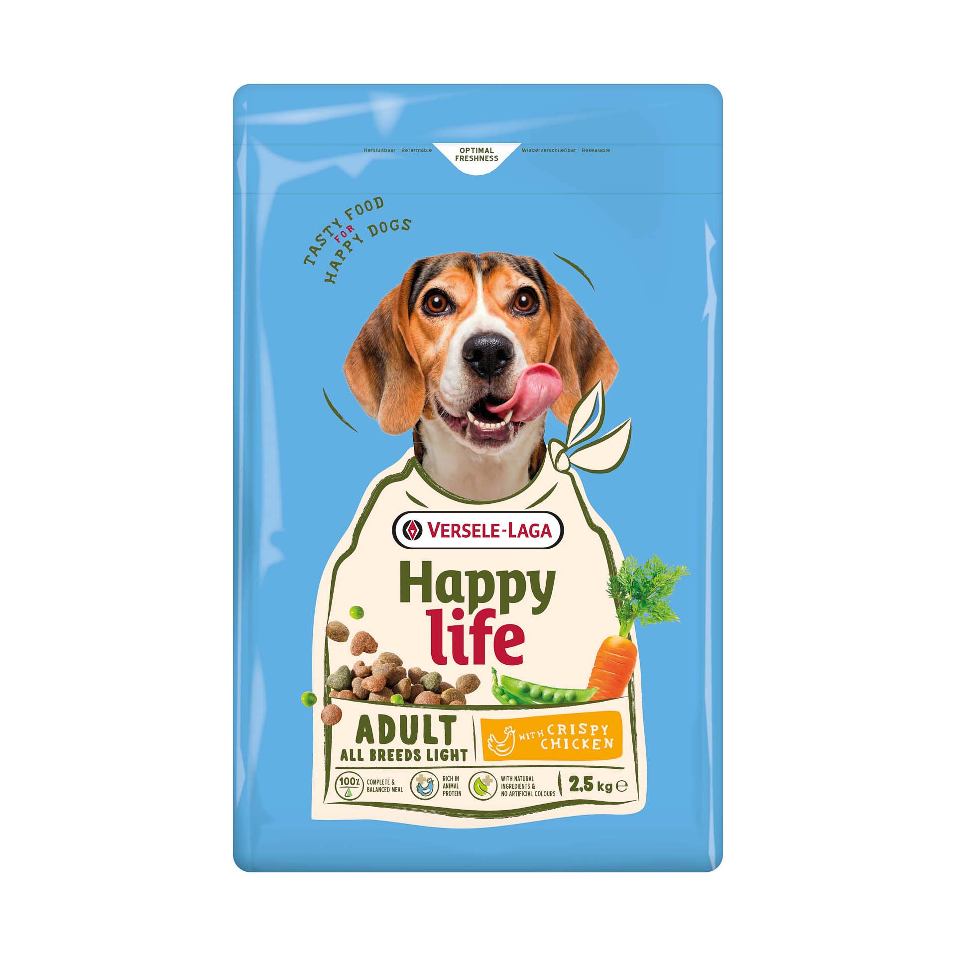 Happy life Adult Light with Chicken je vyvážené krmivo s kuřecím masem - pro psy s nadváhou.
