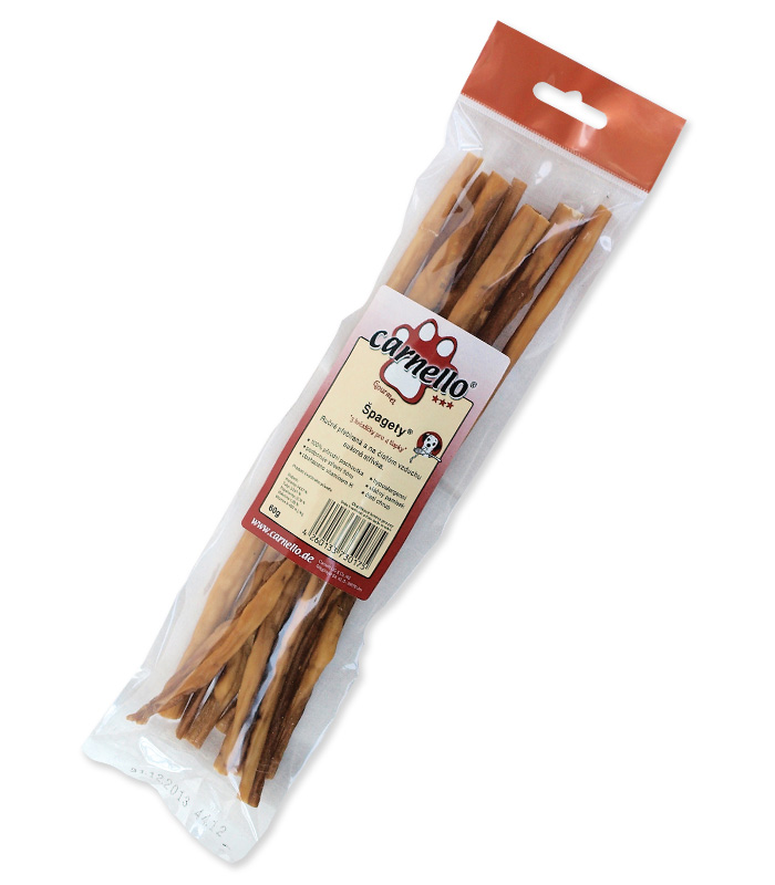 Vepřová střívka nejsou šlemovaná a suší se velmi šetrně, aby zůstala vláčná a aby si zachovala mikroflóru, která má blahodárné účinky na zažívací systém psů. Není dodáván pod značkou Mapes, jelikož firma Carnello vlastní patentová práva.