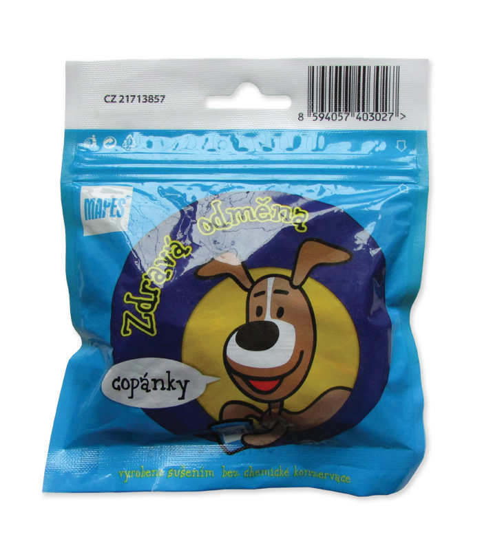 Copánky jsou vepřová střívka nařezaná na malé kousky do 4 cm, lze je tedy použít jako odměnu na procházce, cvičáku nebo jen tak pro radost. Obal je měkký se zipem, pytlík můžete snadno dát do kapsy a opět uzavřít.