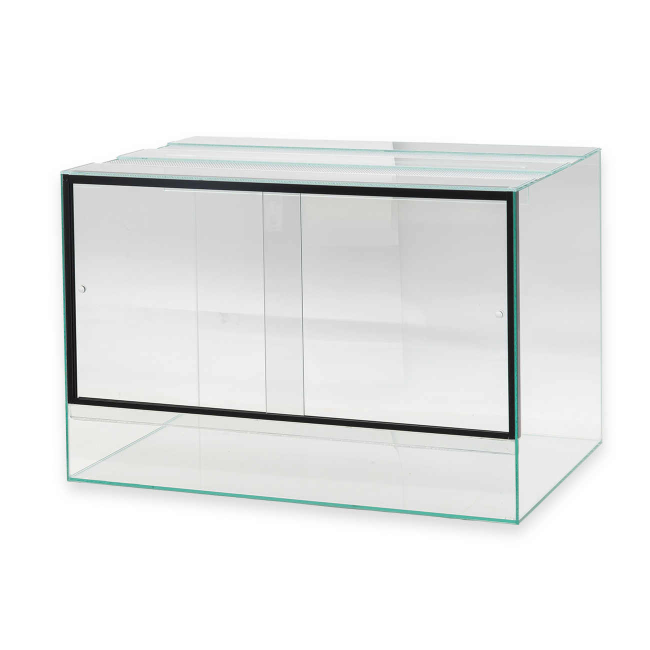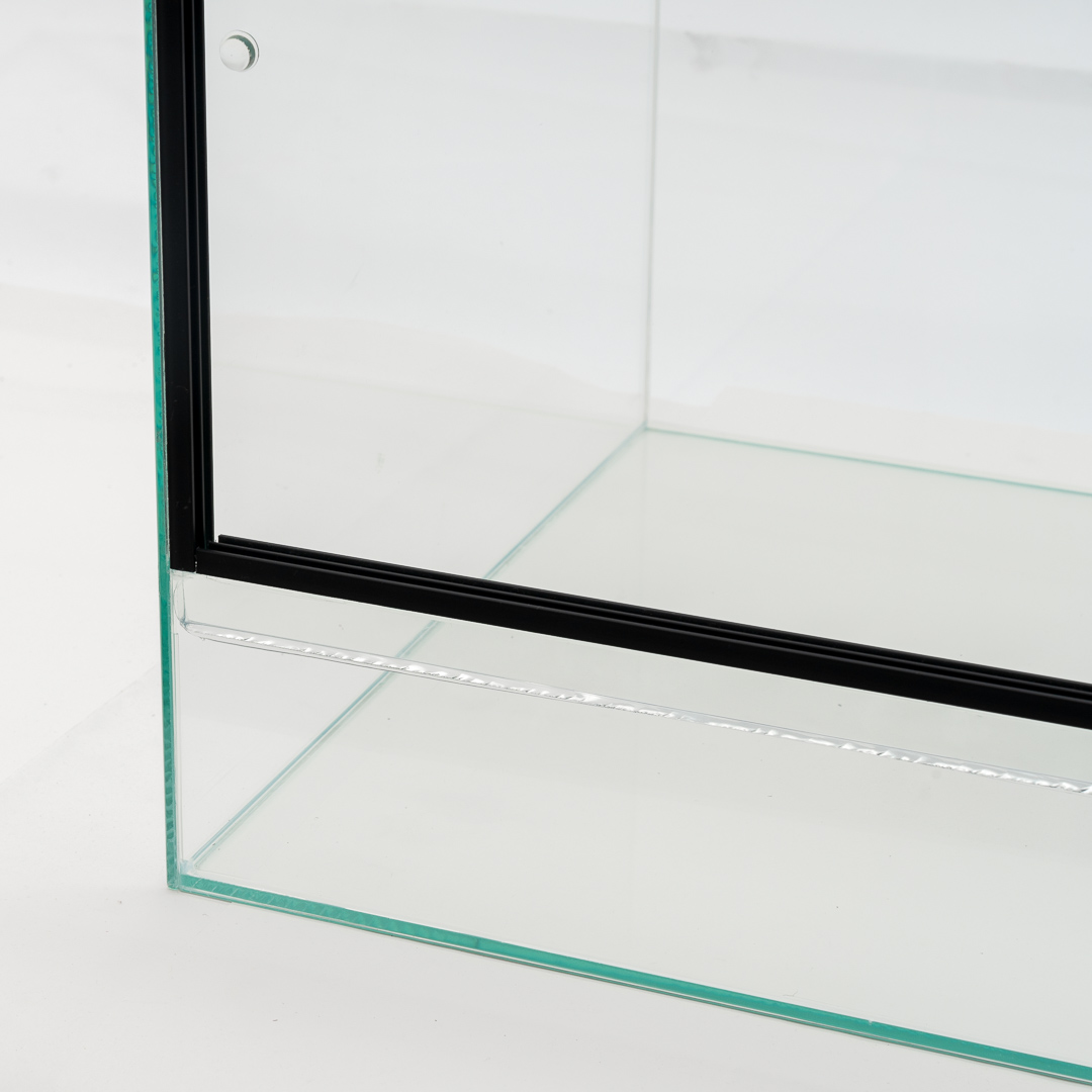 - Otevírání terária je řešeno pomocí dvou proti sobě posuvných skleněných dvířek - tzv. "šoupaček", které jsou vyjímatelné, mezera mezi skly je 3 mm.