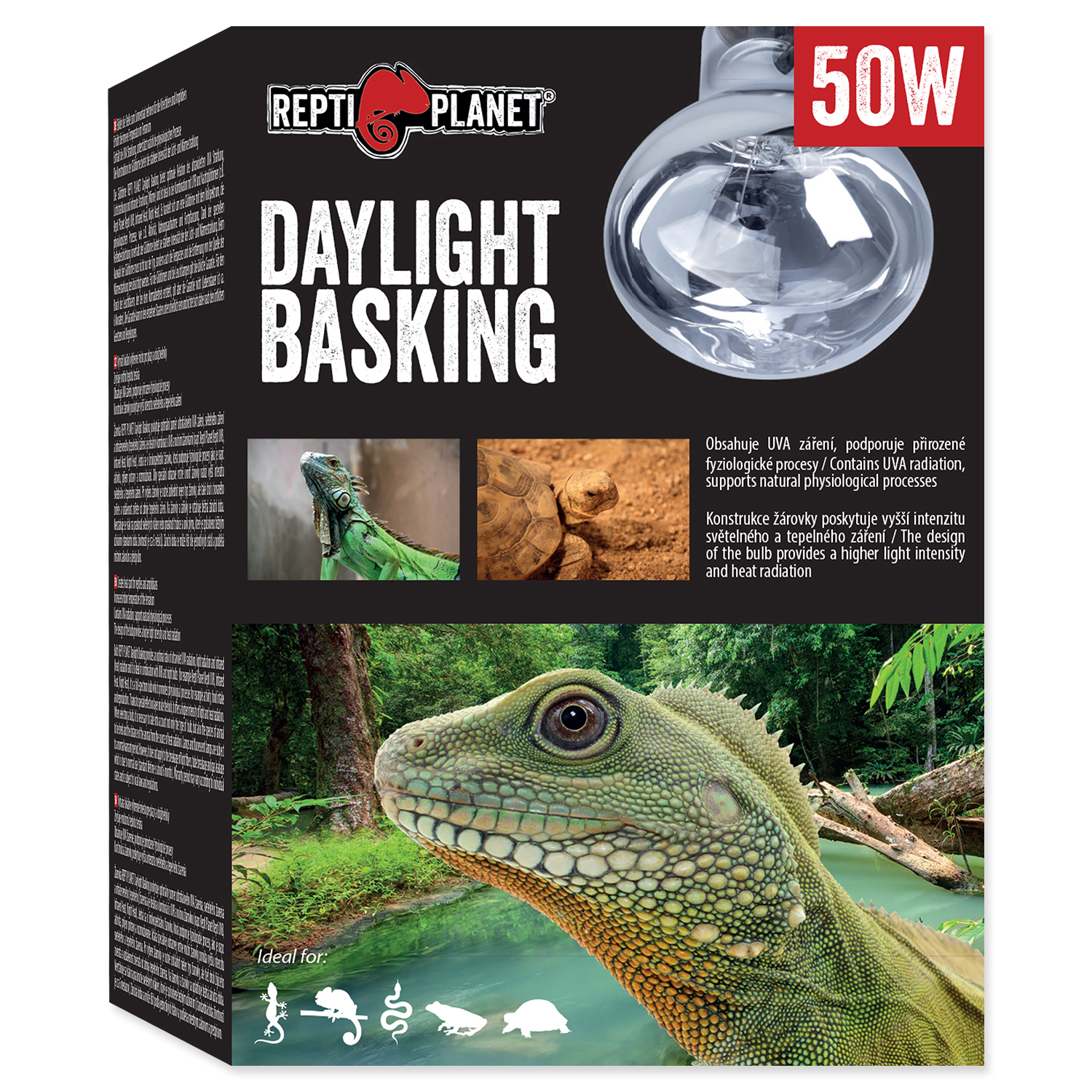 Žárovka REPTI PLANET Daylight Basking poskytuje optimální poměr ultrafialového UVA záření, světelného záření a infračerveného (tepelného) záření a je ideální v kombinaci s UVB a nočními žárovkami (např. Repti Planet Repti UVB, Infrared Heat, Night Heat). Jedná se o širokospektrální žárovku, která podporuje fyziologické procesy jako je např. aktivitu, příjem potravy a rozmnožování. Díky speciální odrazové vrstvě uvnitř žárovky nabízí vyšší intenzitu světelného a tepelného záření.