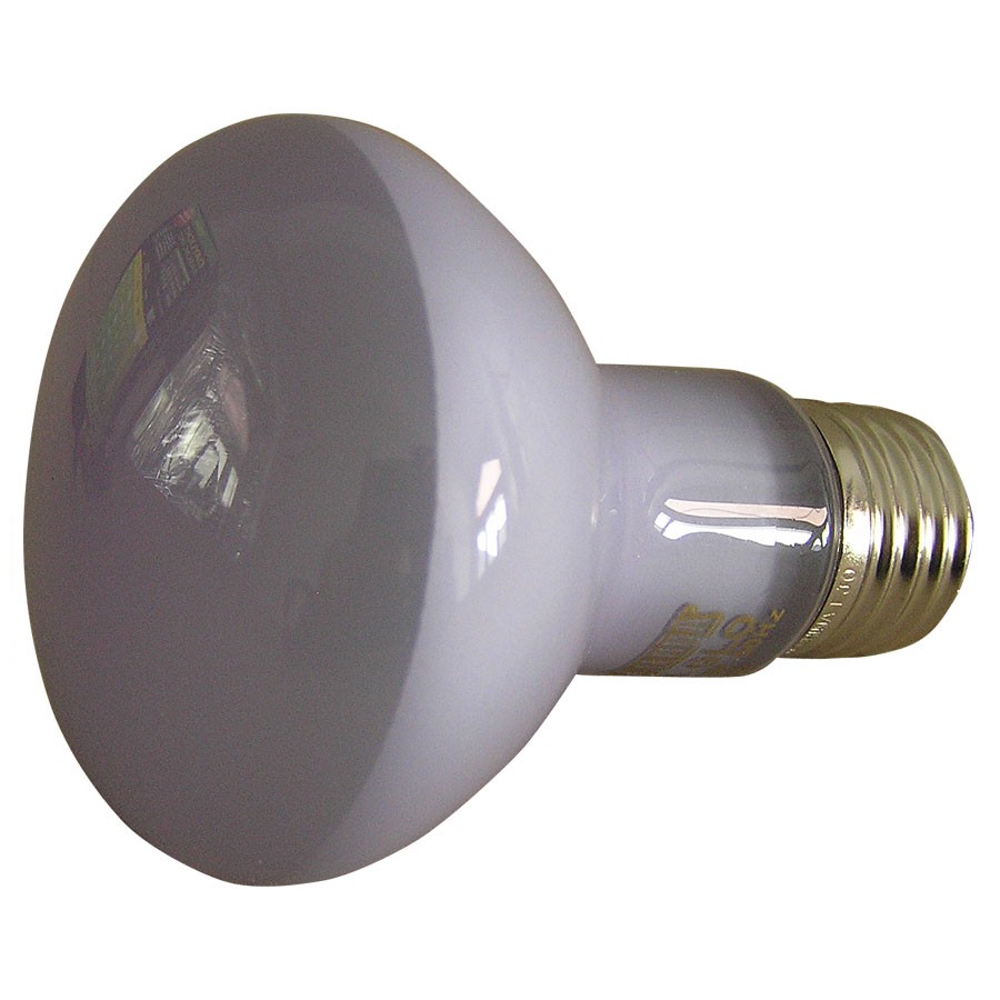 Žárovka Sun Glo Tight Beam - bodové světlo speciálně vyvinuté pro vyhřívání. Teplo a světlo v paprsku je díky reflektorové vrstvě zvýšeno o 75%. Vhodné pro pouštní i tropické druhy zvířat. Bodový zdroj je dobrý v tom, že zachovává v teráriu různé teplotní gradienty, což je pro plazy nesmírně důležité. Kužel tepla směřuje dolů do jednoho místa, proto nedochází ke zbytečným ztrátám. Když se chce zvíře nahřát, vleze si přímo pod žárovku, kde je poměrně vysoká teplota a až se bude chtít ochladit, najde si v teráriu chladnější místo. Žárovka slouží pouze jako zdroj tepla a viditelného světla - nevyzařuje žádné UV-B záření, které je pro většinu plazů nezbytné. Je nutné přidat ještě zdroj UV paprsků, použitím buď klasické lineární nebo kompaktní zářivky. Nebo lze použít vysokotlakou výbojku, která vyzařuje teplo, světlo i UV paprsky zároveň.